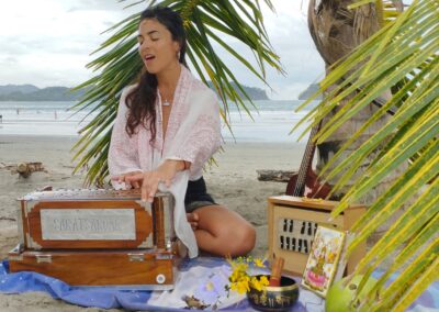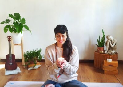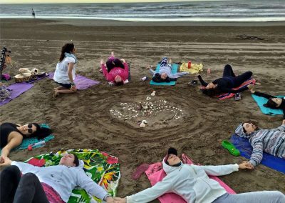 Fusión de Hatha Yoga (posturas pausadas), Vinyasa Flow (dinámico), posturas restaurativas y meditación con instrumentos armonizadores.